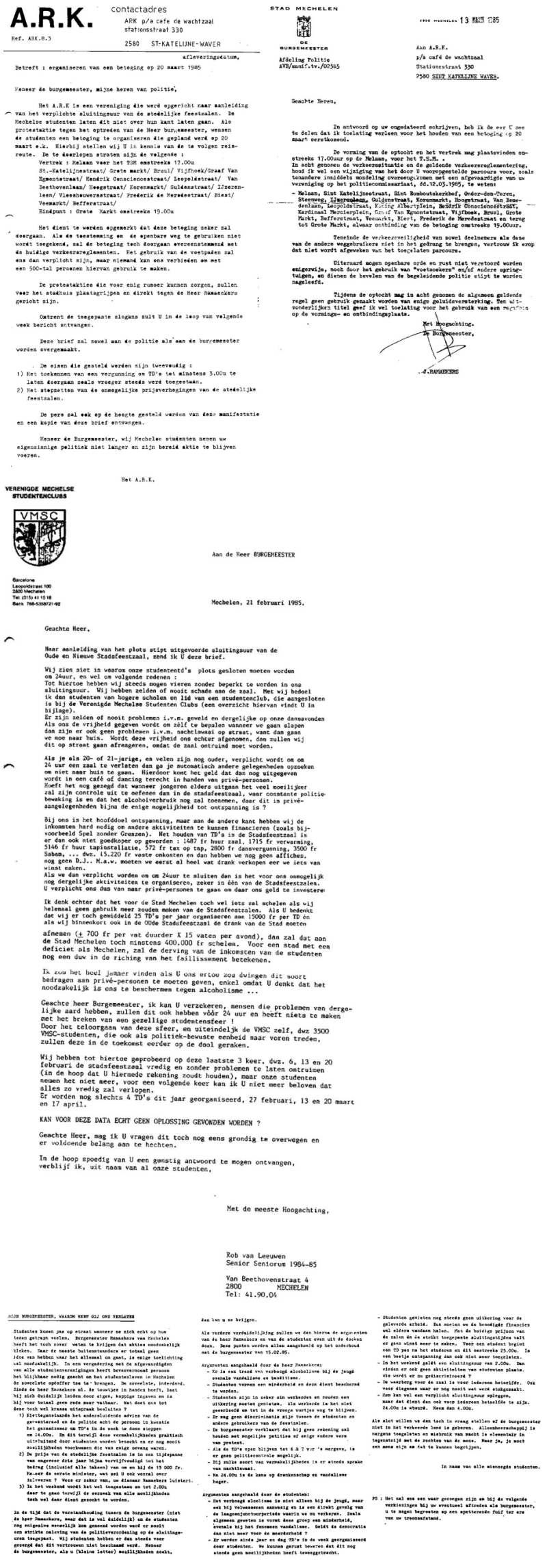 En zó kwam het dat op 20 maart 1985 vele honderden studenten – de Wespers waarschijnlijk ergens in de voorste linies – met megafoons, vlaggen, spandoeken, toeters en bellen en vooral met véééél kabaal door de Mechelse straten trokken. Dat de eigenzinnige burgemeester Ramaekers de kop van Jut was met zijn gevoerde politiek, is de evidentie zelve. Vanaf start tot finish werd hij dan ook luidkeels uitgescheten voor twee (edele) onderdelen van de menselijke anatomie en al wat verderfelijk is.