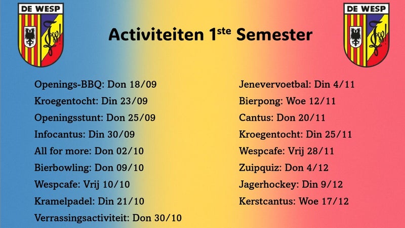 De Wesp probeert altijd zoveel mogelijk activiteiten te organiseren, minstens 1 activiteit per week!